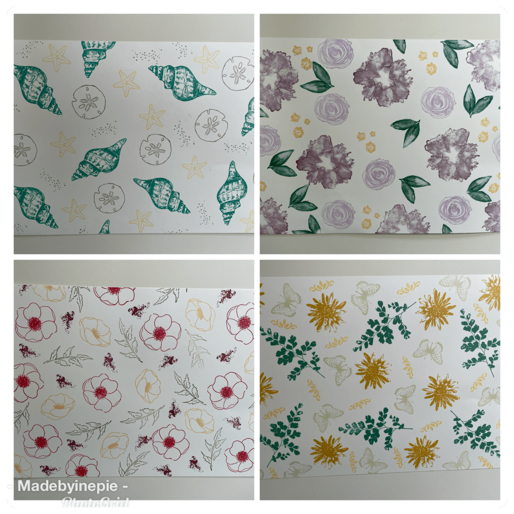 Dit waren mijn voorbeelden. Ik heb 4 stempelsets gebruikt omdat ik de dames nog niet kende en dus niet wist welke figuren of kleuren ze mooi vonden. Ik heb Friends are like Seashells, Artistically Inked, Painted Poppies en Positive Thoughts gebruikt. De dames kozen voor de bovenste twee sets.