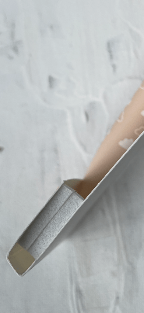 Vandaag laat ik jullie een minidoosje zien voor een pen. De basis is een tag. Ik heb een strook gesneden van 5 cm bij 21 cm. Het bovenste stuk heb ik in de Fancy Tag Topper pons gedaan en de Delightful Tag Topper pons. Het onderste stuk heb ik gerild op 2 cm en 2,5 cm en dit omgevouwen. Daartussen heb ik twee op elkaar geplakte stukjes Foam adhesive strips geplakt van 1,5 cm.