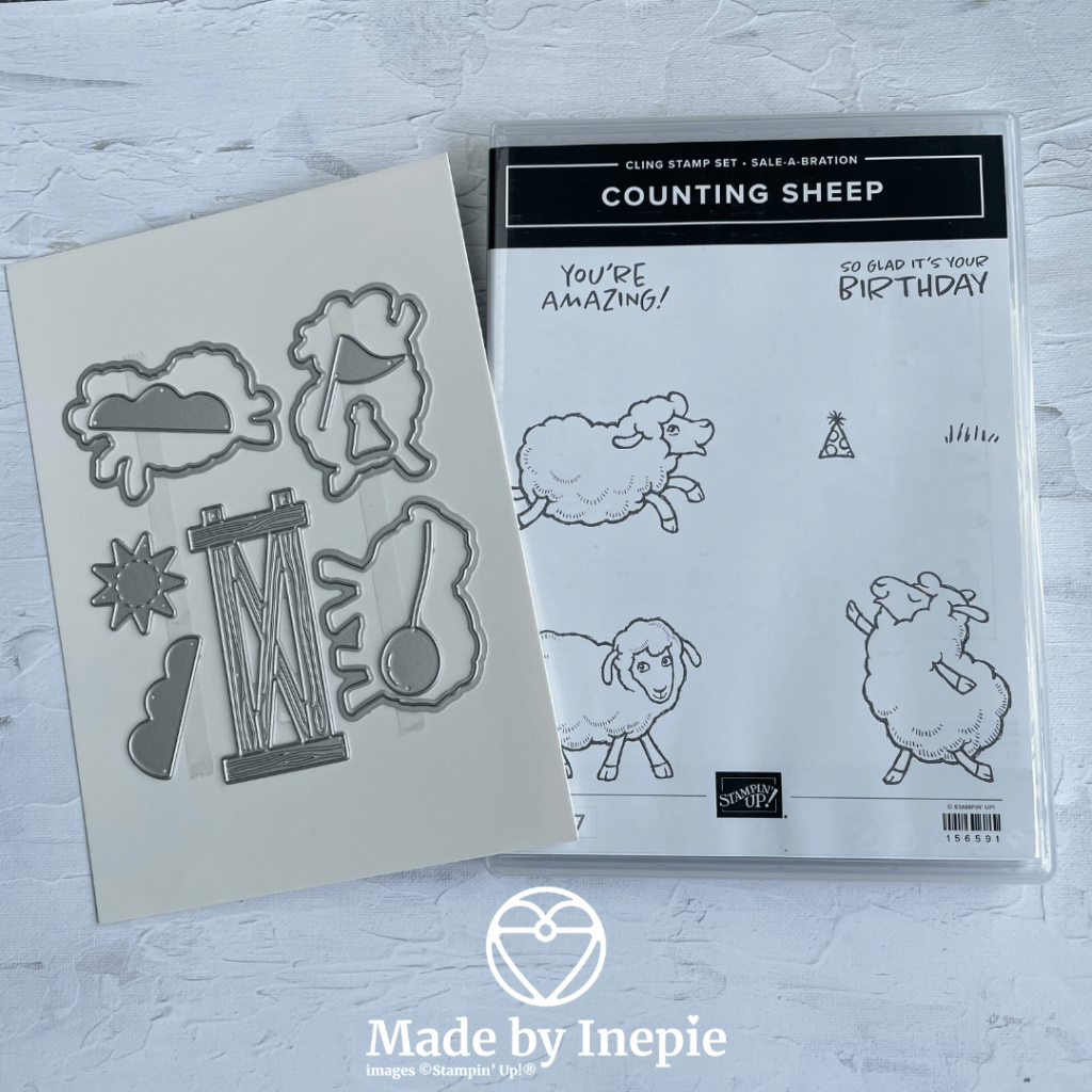 Vandaag een makkelijk gestempeld kaartje met de straks tijdens Sale-A-Bration gratis uit te zoeken stempelset: Counting Sheep. Super leuk toch en er zijn zelfs ook gratis stansen bij te krijgen. Bij een bestelling van €60,00 kun je bv de stempelset uitzoeken en heb je nog voor een extra €60,00 aan producten uitgezocht dan kun je de bijpassende stansen uit kiezen.