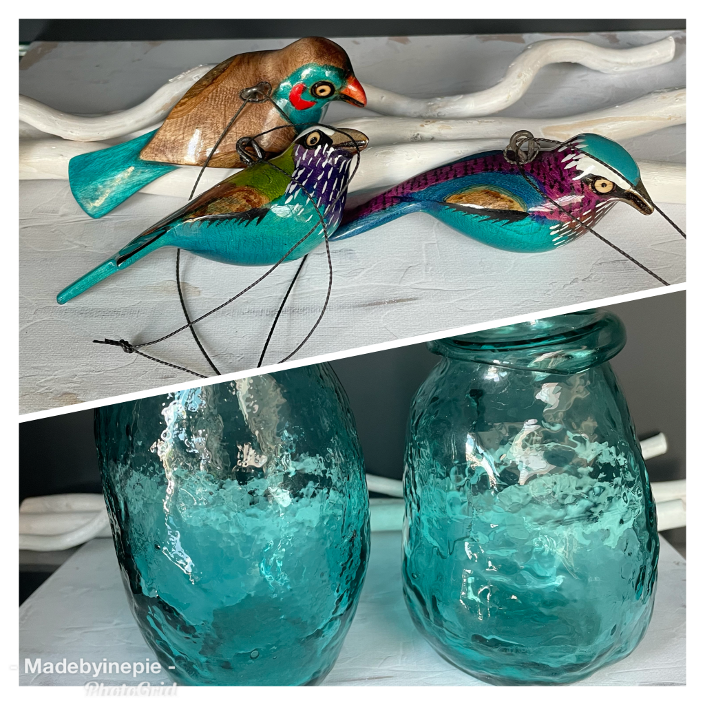 Heerlijk rondgeslenterd en twee leuke zelfgemaakte vaasjes gekocht en 3 schattige geluksvogeltjes. Natuurlijk in mijn favoriete kleur.