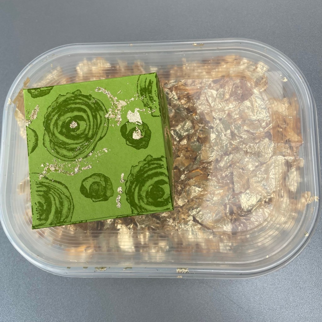 Ik ben superblij met het eindresultaat. Een chique klein doosje. Ik denk dat ik vaker een doosje uit elkaar ga halen hihi. Oh en even je handen wassen met warm water en het goud is zo van je vingers.