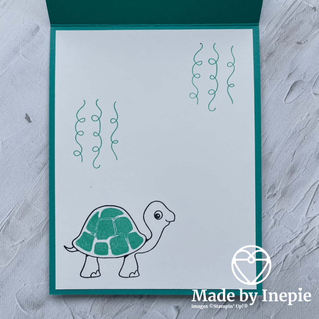 De binnenkant heb ik ook bestempeld met een schildpad en de slingers uit de dezelfde set.