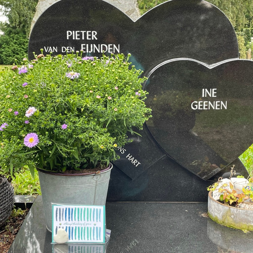Vandaag is ook mijn trouwdag, 15 jaar geleden trouwden we toen voor de kerk. En was ook ons grote feest. Gisteren ben ik naar het graf geweest en heb daar mijn kaartje neergezet met een stenen hartje. We zouden vandaag 36 jaar getrouwd zijn. Ik weet nog goed hoe moeilijk ik het had toen mijn vriendinnen hun 25 jarig huwelijksfeest konden vieren: dat hebben wij niet gehaald. Ik weet nog dat er ouders gingen scheiden en dat 1 van mijn zonen zei: “mama, jij en papa hebben het wel gehaald”. Ik zei” wat dan jongen”? Zegt hij” tot de dood ons scheidt”. “Ja dat klopt schatje” zei ik en voelde de tranen in mijn ogen prikken. Ik kan terug kijken op een geweldig huwelijk met een schat van een man en een zorgzame vader. Maar bijvoorbeeld onze jongste zoon herinnert zich bijna niks meer van zijn vader en dat doet zeer. De jongens kennen Willem nu langer dan hun eigen vader. “Tel wat je hebt en niet wat je mist”, mijn lijfspreuk en op dit soort dagen mijn houvast. Want missen doe ik hem nog iedere dag.
