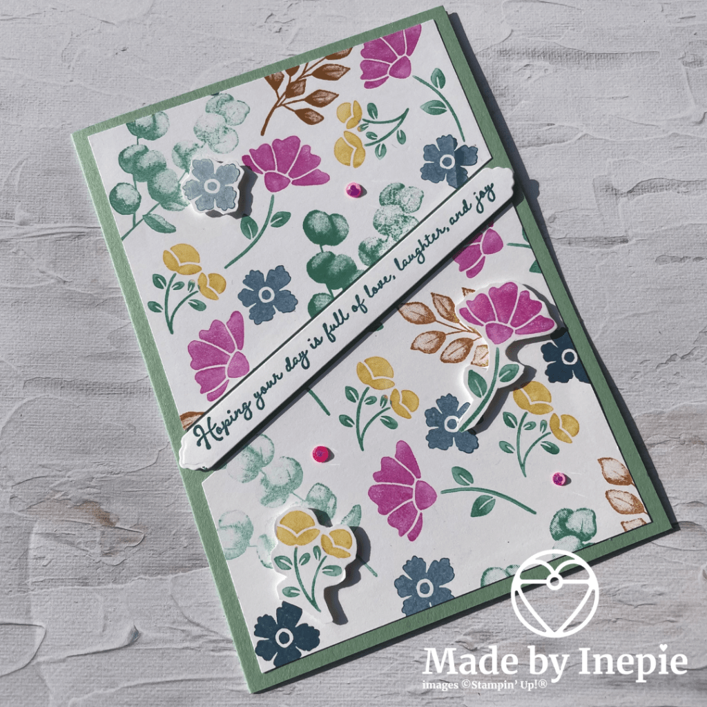 In mijn bak met restjes vond ik een stuk cardstock wat ik bestempeld had met de kleine stempeltjes uit de Lovely You stempelset. Heerlijk los uit de pols gestempeld.