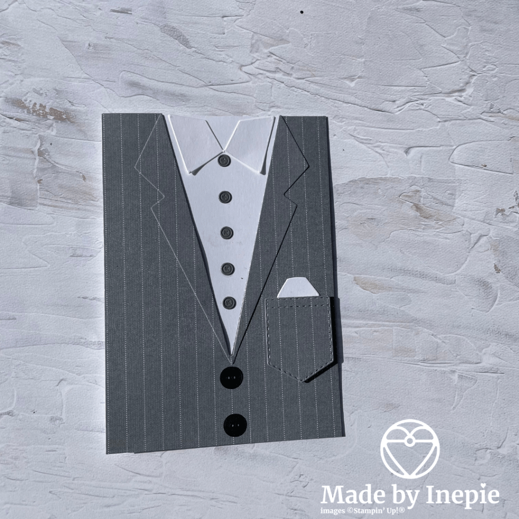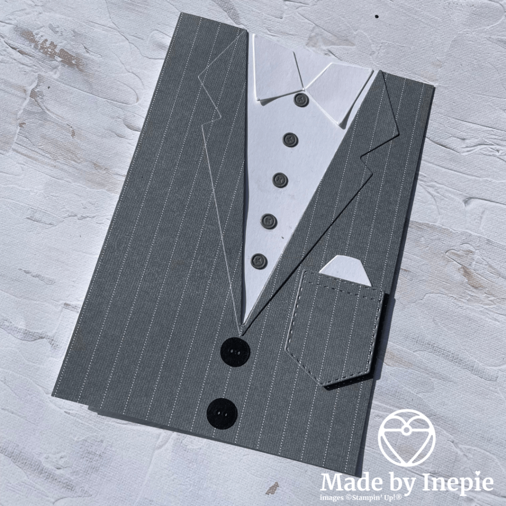 Vandaar vandaag nog niet geknutseld ( dan is het echt , slecht met mij gesteld) en laat ik jullie hier de kaart voor Willems Verjaardag zien. In verband met het overlijden van mijn vriendin had ik die hier nog niet getoond. In de vakantie liep Willem lekker in polo en korte broek maar als hij naar klanten moet gaat hij netjes in pak. Wel zonder stropdas. Ik vind hem dat mooi staan en omdat ik te weinig deze mooie “Suit & Tie” stansen heb gebruikt ( teveel nieuwe producten en te weinig tijd) heb ik ze nu voor zijn verjaardags kaart gebruikt.