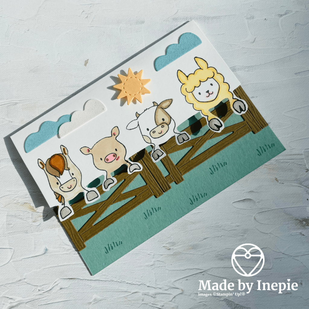 Is dit geen schattig kaartje. Het idee van de gedeeltelijke uitgeknipte of gestanste diertjes zag ik bij Jennifer McGuire. Zij is geweldig, geen Stampin’Up! demo maar werkt voor heel veel merken. Heel leuk is het om haar kaarten te “vertalen”naar Stampin’Up! Kaarten.
