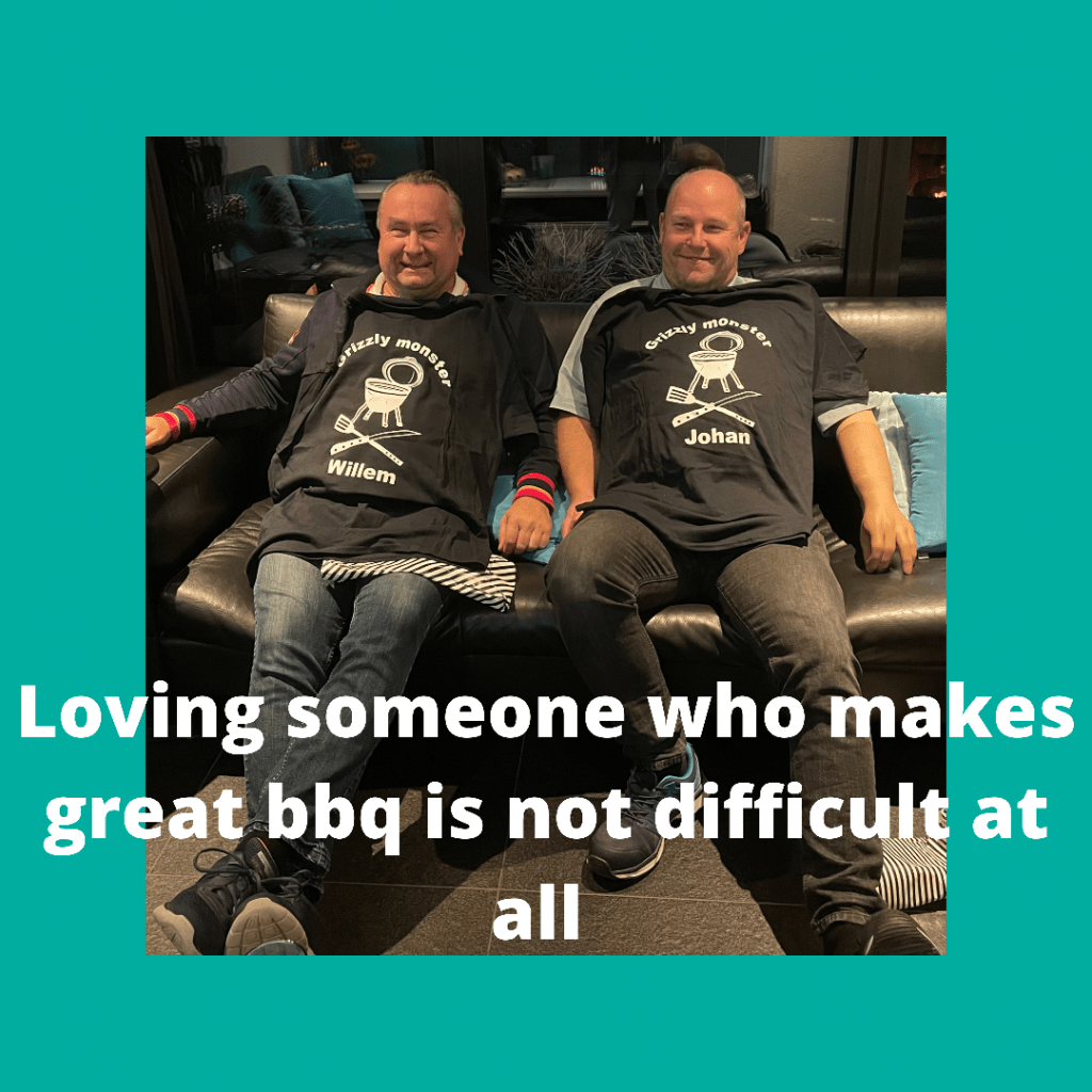 Vandaag is het echt zo’n regenachtige herfst dag dat je heimwee hebt naar de zomer, zon en bbq. Willem en onze vriend Johan zijn besmet met het Grizzly virus. Een merk bbq. Mijn vriendin Mirjam en ik noemden hun dan ook Grizzly monsters want als de 1 wat had gekocht voor zijn Grizzly moest de ander dat ook hebben. Dus voor hun beide verjaardagen had Mirjam deze t-shirts gemaakt: geweldig! Ze kregen dit afgelopen donderdag en ze vonden het ook super. En Mirjam en ik zijn beide dol op onze monsters hihi.