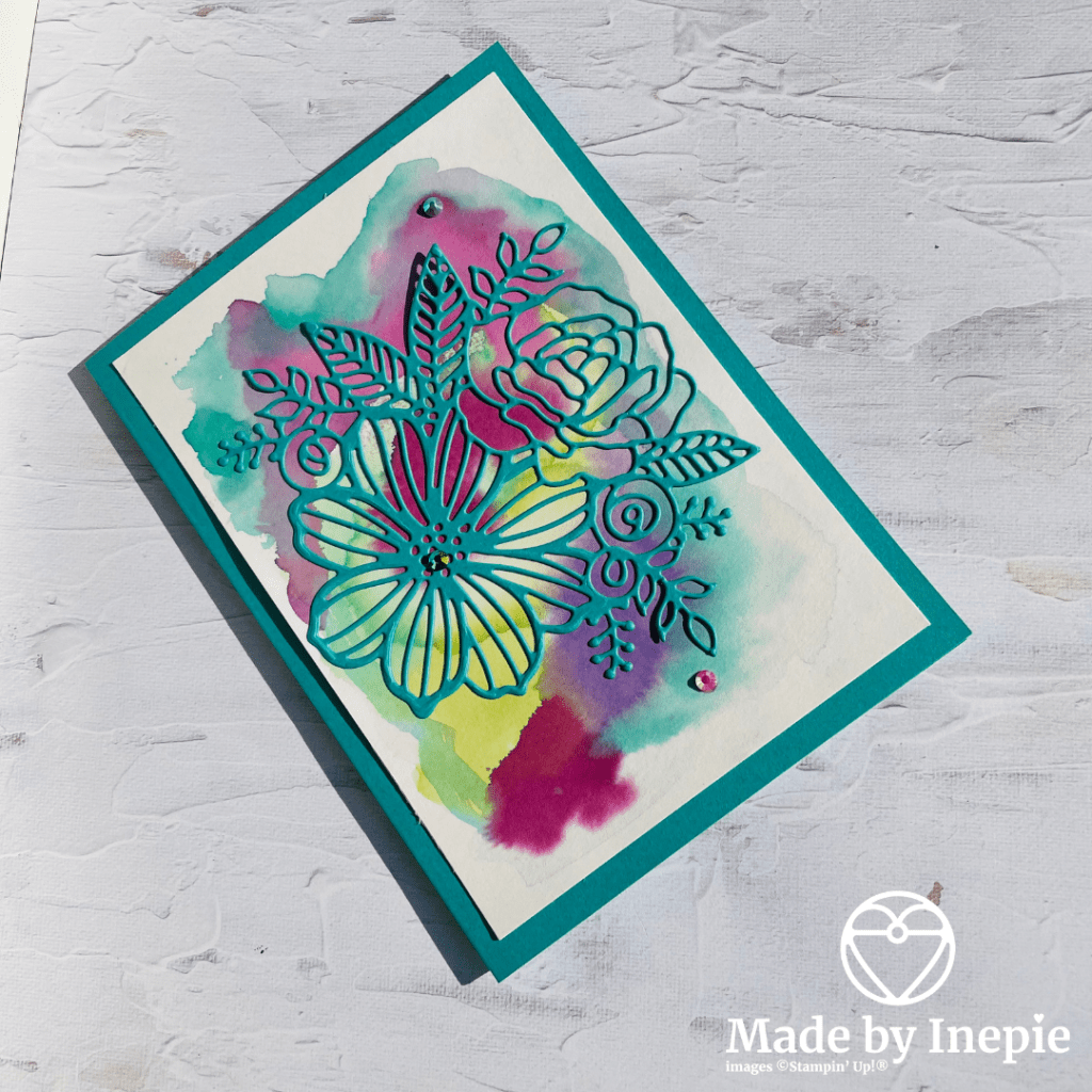 Vandaag een kaartje wat super eenvoudig is. Je maakt eerst een leuke achtergrond met water painters en inkt. Dat kan door inkt uit een inktpad op een clearblock de doen of de refills te gebruiken en dan lekker kliederen. Heb je mijn nieuwste YouTube filmpje al gezien? Daar laat ik het zien. En als ze goed droog zijn dan stempel je erop of plakt stansjes erop of je maakt een sticker met de adhesive sheets en plakt het op de achtergrond.