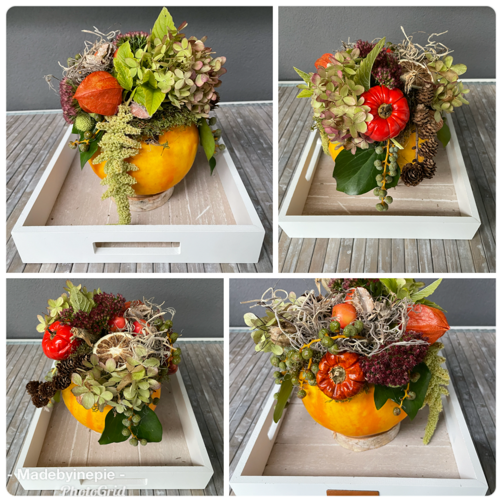 Ik heb geprobeerd het zo te maken dat de pompoenen aan alle kanten mooi zijn.