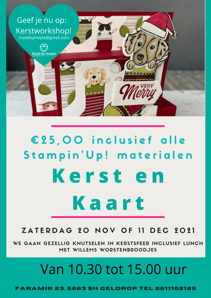 Nu een leuk nieuwtje: 11 december is mijn Kerst en Kaart evenement al volgeboekt! Wow super leuk! Op 20 november heb ik nog wat plekjes vrij. Maar wees snel want het gaat hard. Komt deze datum jou niet uit mail mij, dan kijk ik of er nog een derde Kerst en Kaart datum erbij komt.