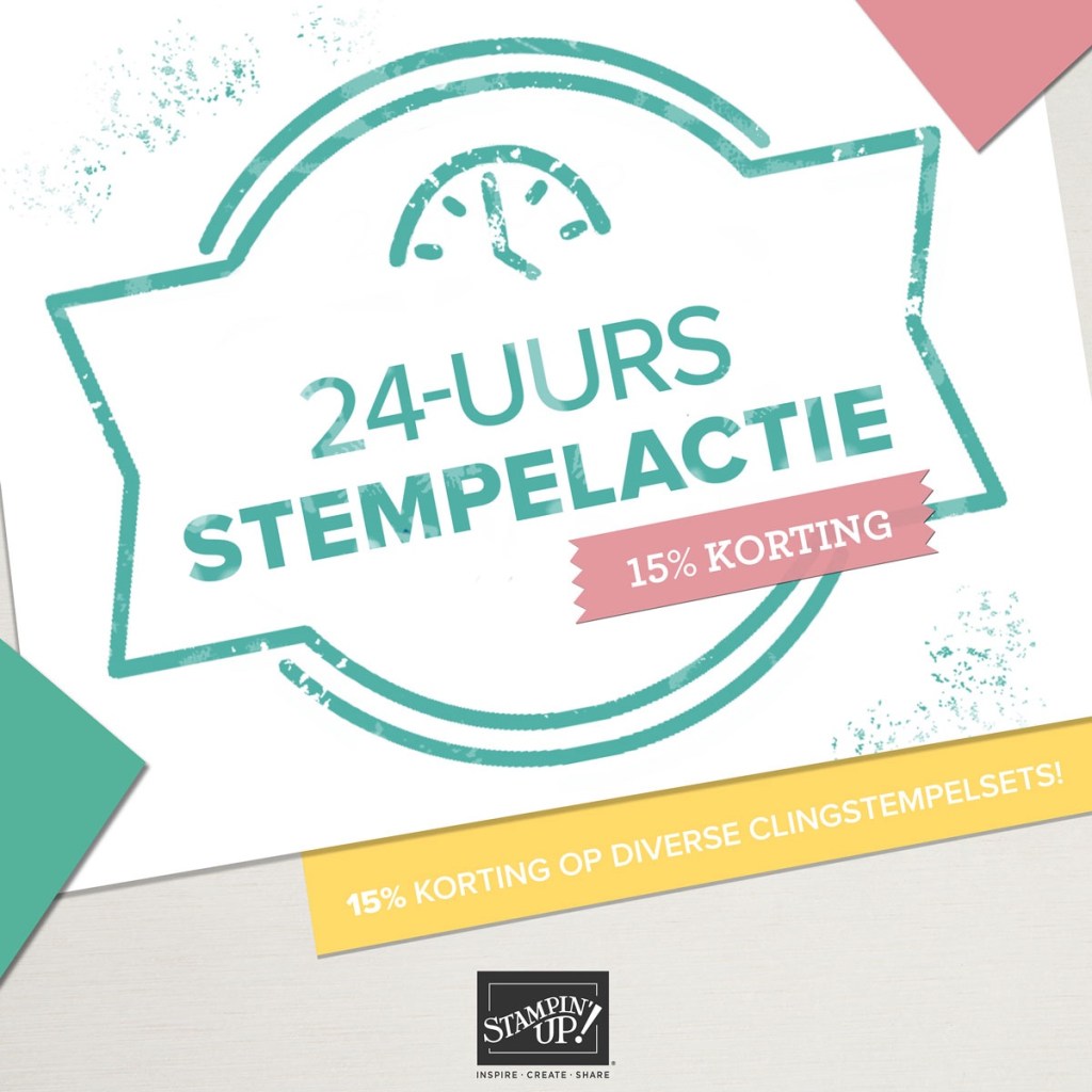 Vanaf vannacht 00.00 uur tot morgen nacht 23.59 uur houdt Stampin’Up! Een 24 flash Sale: 15% korting op heel veel rood rubberen stempelsets. En ja ook de Nederlandse sets zitten erbij. Hierboven staat de link maar je kunt ook rechtstreeks naar mijn online shop gaan: