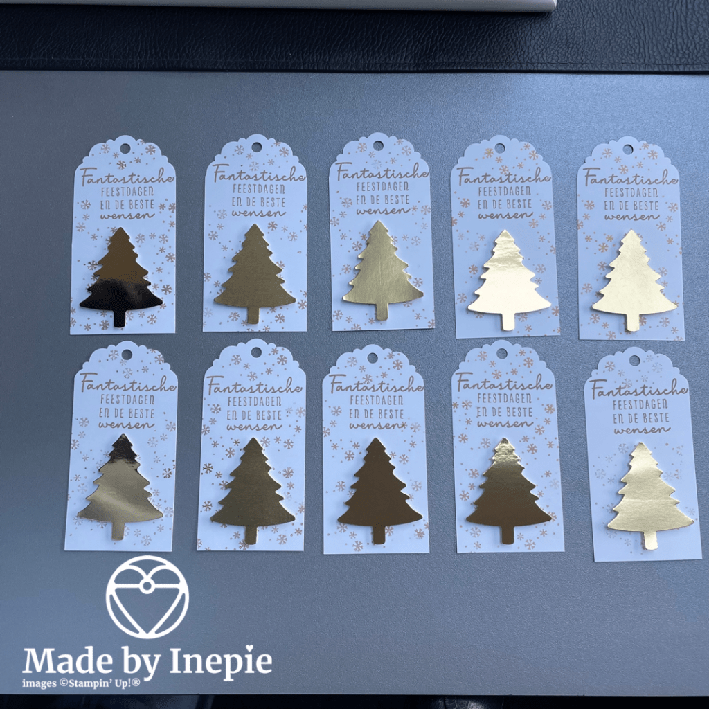 En om in de labels te blijven: bovenstaande 10 labels heb ik in opdracht mogen maken. Ze horen bij de kerstboompjes met cijfers die mijn vriendin nodig had om advent kalenders te maken. Zo blij met mijn Stampin’Up! ponsen!