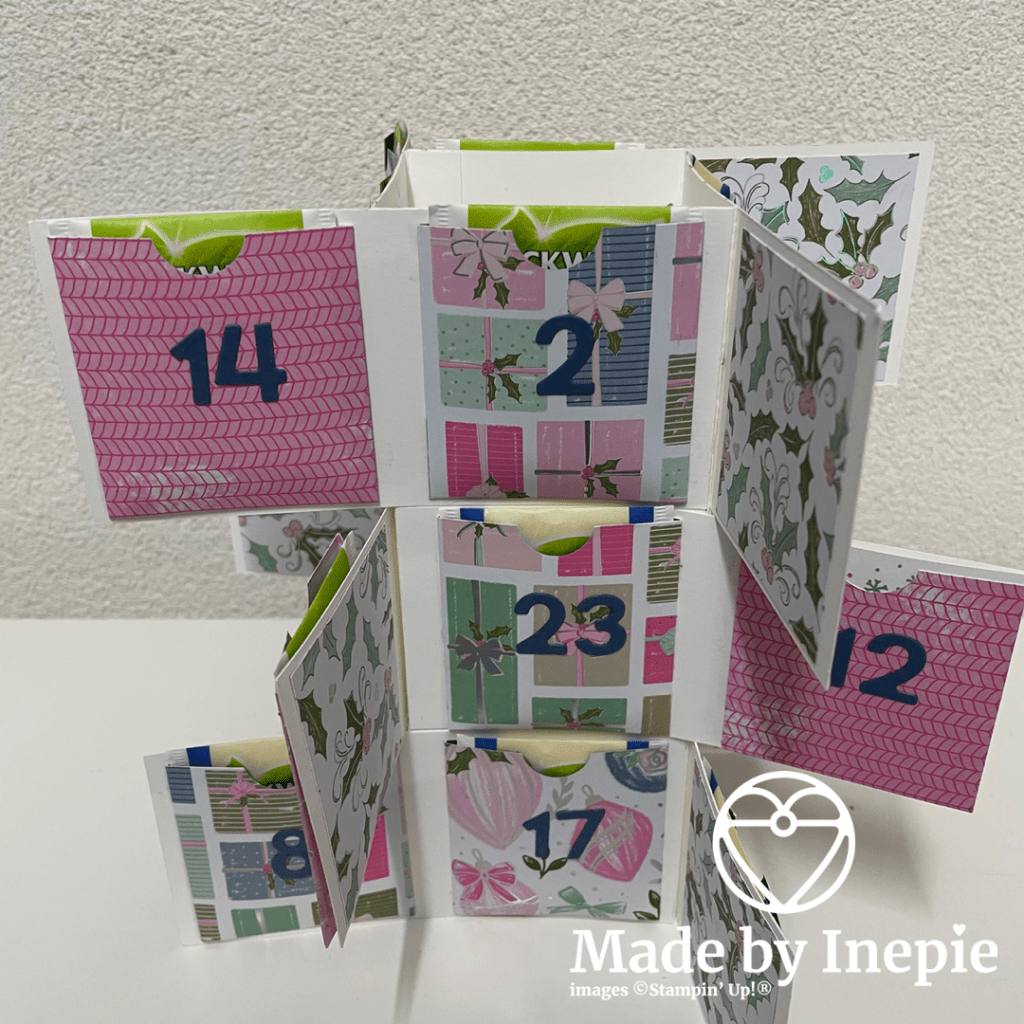Eindelijk is het mij gelukt: ik wilde al heel lang een adventskalender maken voor theezakjes. Ik zag diverse uitvoeringen maar de leukste vond ik toch deze van Bibibook. Zij heeft echt diverse modellen op haar YouTube kanaal staan. Ik moest wel de maten aanpassen want haar theezakjes waren groter. En ook de torenmaat heb ik aangepast.