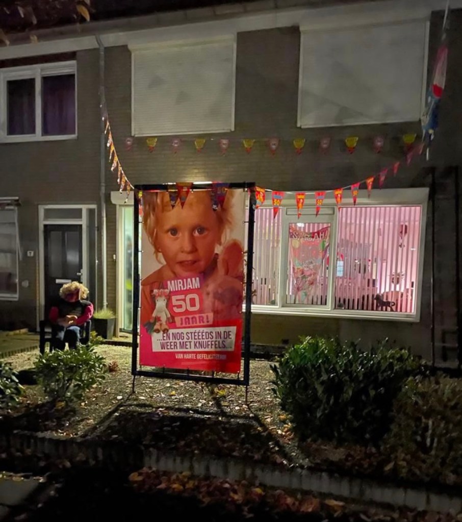 En toen kon ze moe maar voldaan naar huis en daar wachtte haar een enorme verrassing waar mijn Willem ook nog mee had geholpen want die was natuurlijk niet gaan kaarten.