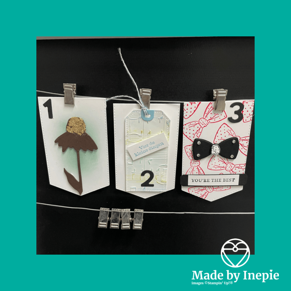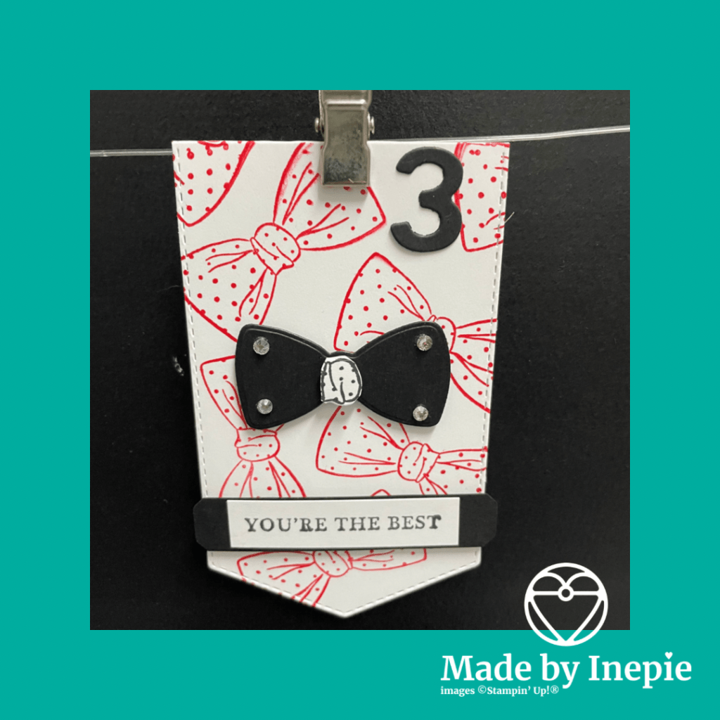 Deze keer een simpel gestempeld kaartje. Het strikje komt uit de set Handsomely Suited. Het doet mij denken aan Minnie Mouse daarom een zwart strikje erboven op want dat doet mij weer denken aan Mickey Mouse. Super leuk en vrolijk kaartje toch?