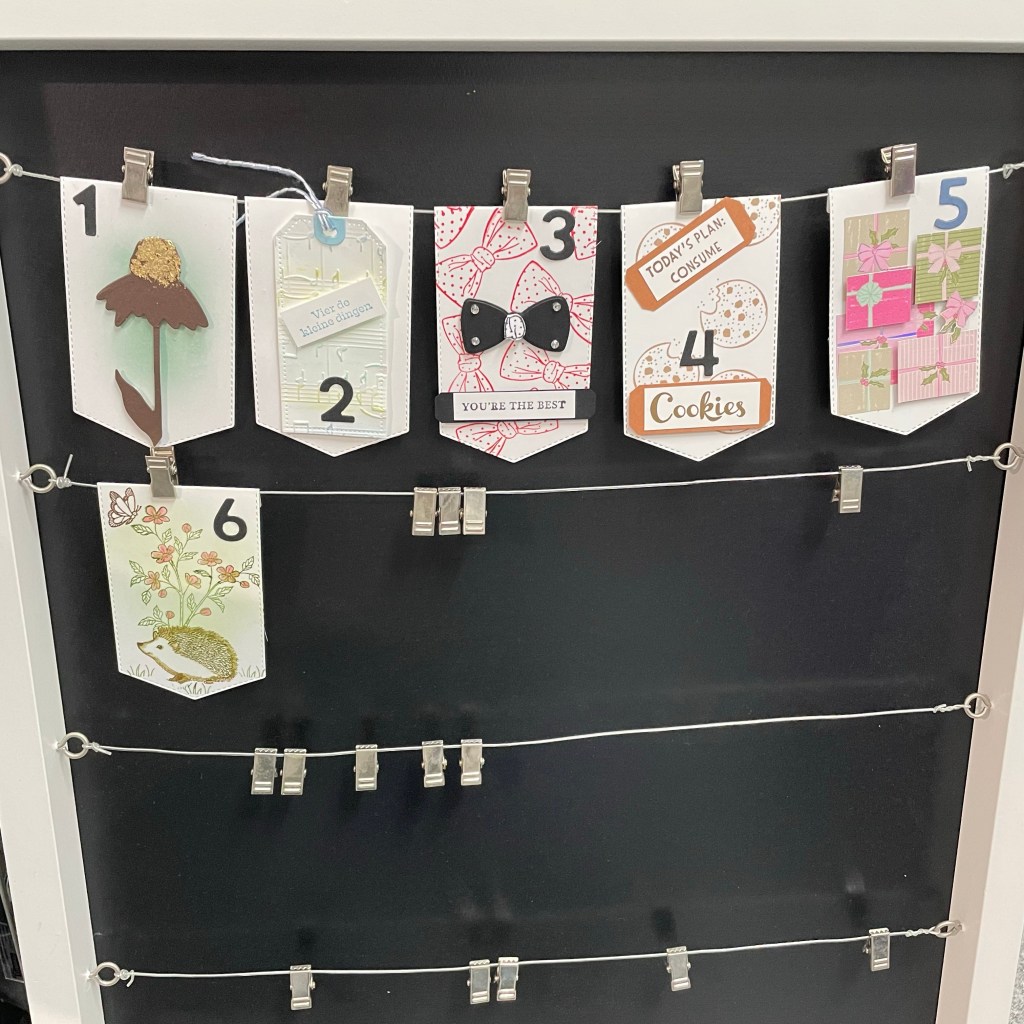 Ik ben dus nu aan het tweede rijtje begonnen. Zo leuk weer al die kaartjes op mijn bord. Daar kan ik straks weer een jaar lang van genieten.