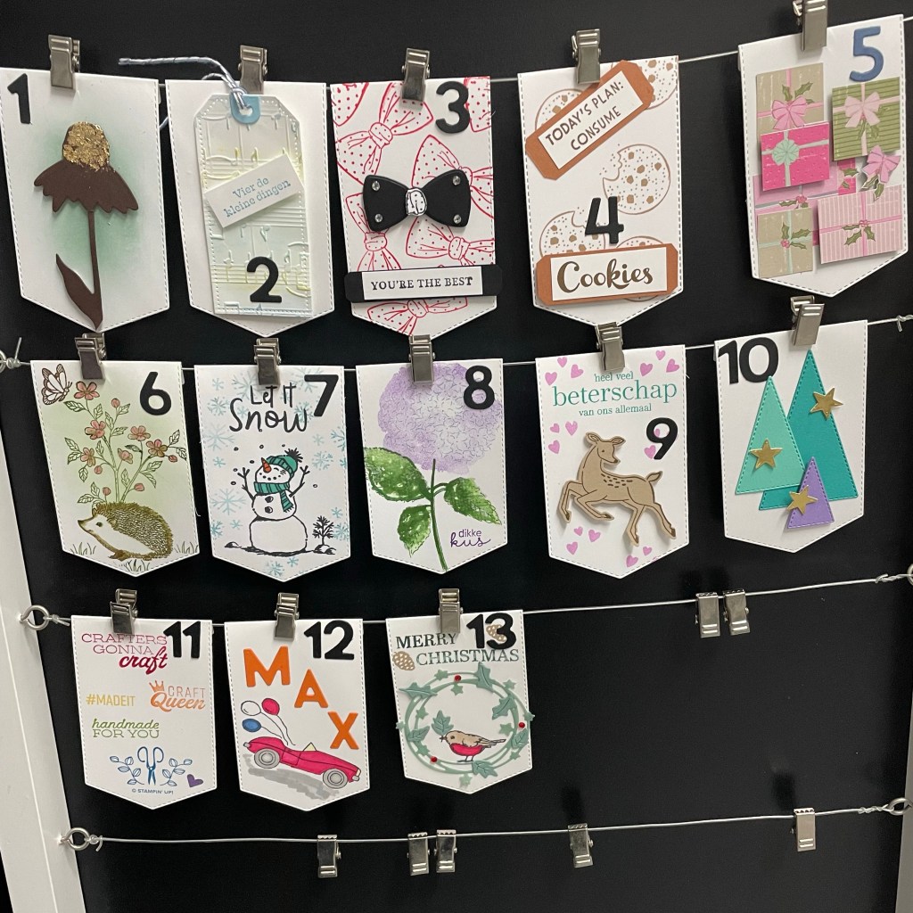 Het schiet echt op met mijn bord, nog 12 dagen te gaan. Ik ben vandaag al druk bezig geweest met de kerstkaarten. Vanavond bij de tv nog wat kleuren en knippen. Zaterdag heb ik mijn laatste Kerst en Kaart en was er eigenlijk een videohop van ons team, maar ik wil deze week de kerstkaarten verstuurd hebben dus doe ik een keer niet mee.Zijn jullie al klaar met de kerstkaarten?