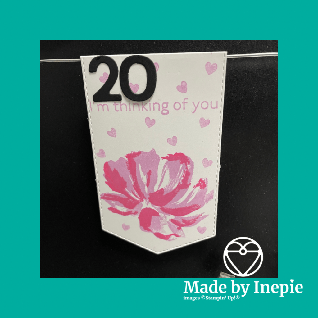 Dus vandaag deze mooie bloem in de kleuren Polished Pink en Fresh Fresia. Met hartjes uit de Pinquin Pret set. I’m thinking of you. Nooit vergeten: voor altijd in ons hart!