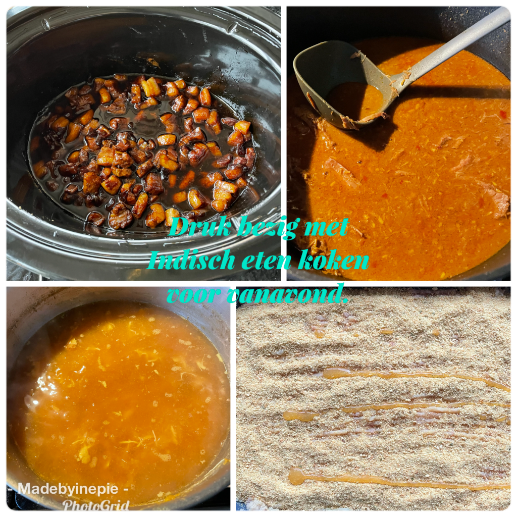 Ik stond vanochtend al vroeg in de keuken. Michael had gevraagd om Indisch te eten vanavond. Dus heb ik Rendang ( rundvlees) Babi Ketjap ( speklapjes) Soto ( kippensoep) en Frikadel Pan ( gehaktbrood) en Ketimoen ( zoet zure komkommer schijfjes) gemaakt. Ik ben geboren in Meer Veldhoven en heb nog nooit een rijstveld gezien, ik ben gek op stampot maar deze gerechten vind ik heerlijk en mijn kinderen ook. Ik noem het altijd Blanda Belazer: of te wel een nederlander vindt het lekker en denkt dat het echt indisch is, maar ik doe het op de easy peasy manier haha. Grappig is wel dat mijn moeder die heel goed Indisch kon koken mijn eten ook heerlijk vindt.