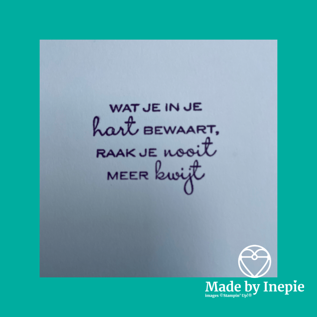 Dit stond in de binnenkant en ik kreeg kippenvel toen ik Gemma’s dochter deze woorden hoorde uitspreken tijdens de uitvaart. Ik mis haar nog steeds, denk vaak oh effe Gemma bellen. Ook met oud en nieuw kijk je terug en haar dood was echt een zwarte bladzijde. Gelukkig heeft mijn Stampin’Up! mij ook door die periode heen gesleept. En mijn lieve vriendinnen.