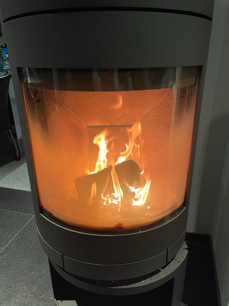 Wat ik echt gemist heb is ons haardje. Hier word ik zo blij van: heerlijk in de vlammen staren en die warmte!