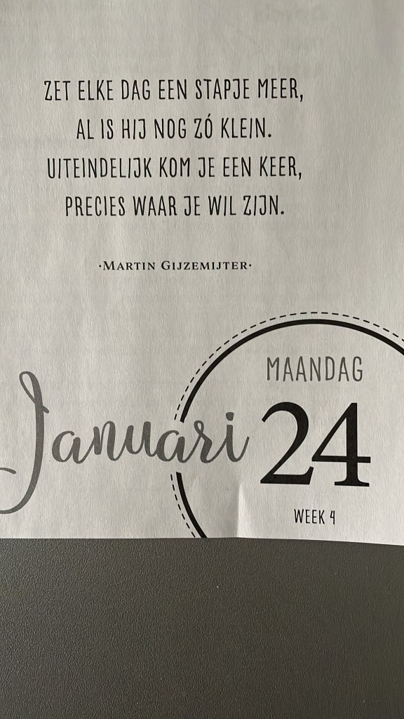 Mijn volgers weten dat ik een grote fan ben van Martin Gijzemijter. En dit jaar heb ik niet de gewone jaarkalender gekocht maar de nieuwe scheurkalender. Zo leuk om iedere dag een verassend gedicht te lezen en vaak past het perfect bij de dag. Ik heb er ook een paar naar Dennis gestuurd toen hij in Zeist zat. Dit was er 1 van.