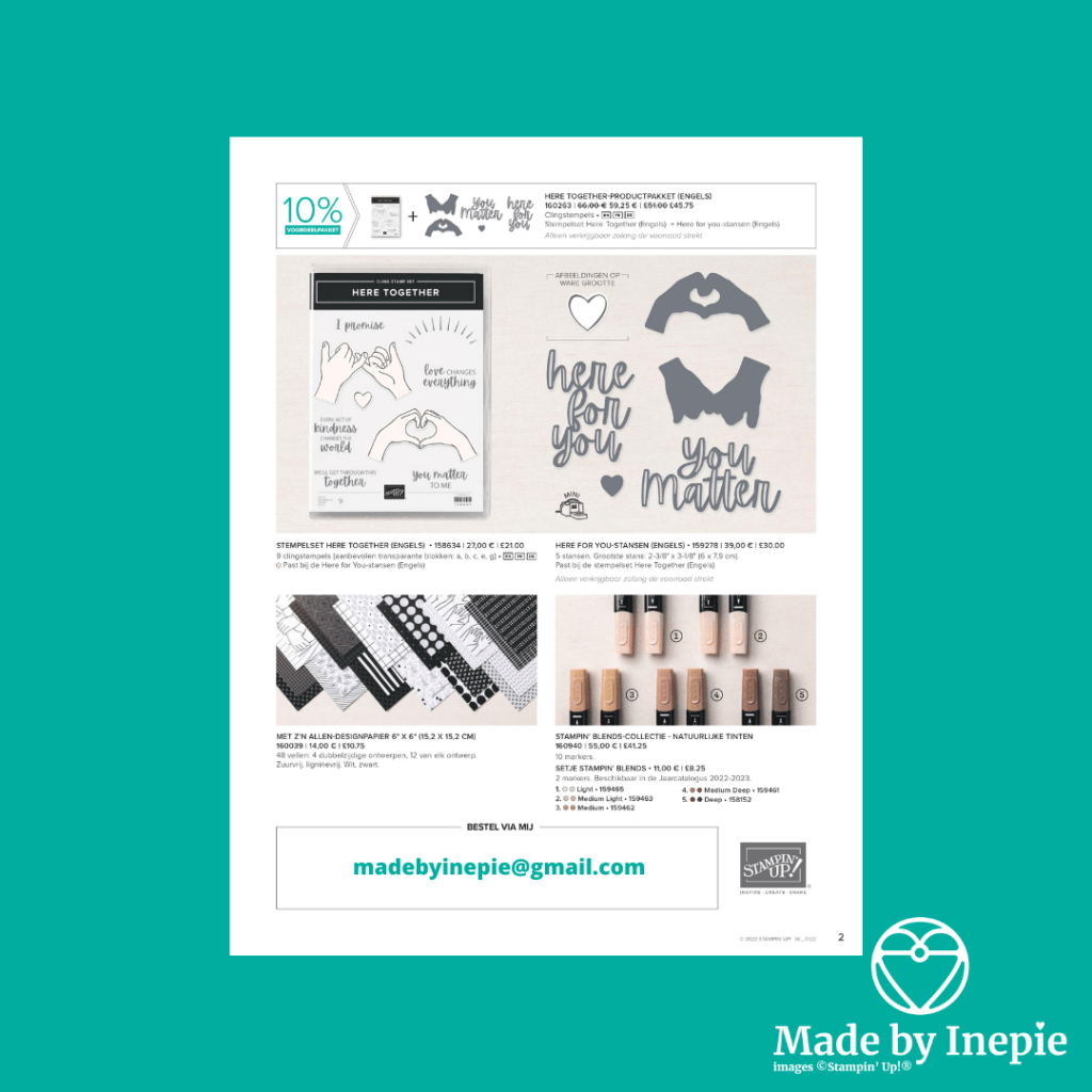 Kijk deze paste er ook perfect bij. Vandaag ga ik lekker door met Stampin’Uppen. Eindelijk weer tijd om dat op te pakken. Niet te geloven dat de eerste maand van dit nieuwe jaar alweer voorbij is. Nog maar 1 maand Sale-A-Bration met de mooie gratis producten. En vanaf 1 februari kunnen jullie ook de prachtige Here Together stempelset, Dsp en huidtonen Stampin’ Blends bij mij bestellen. Zo gaaf! Daar maakte ik dit kaartje mee.