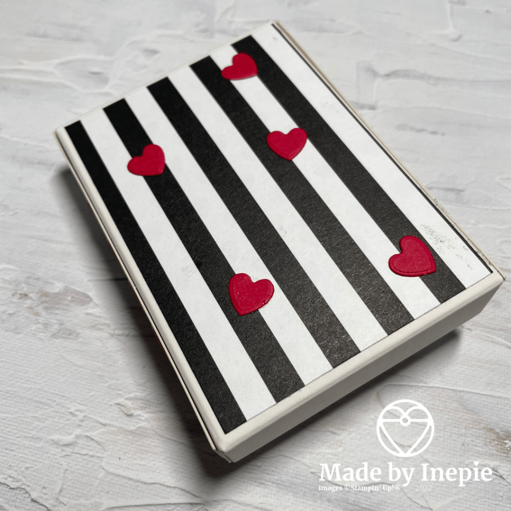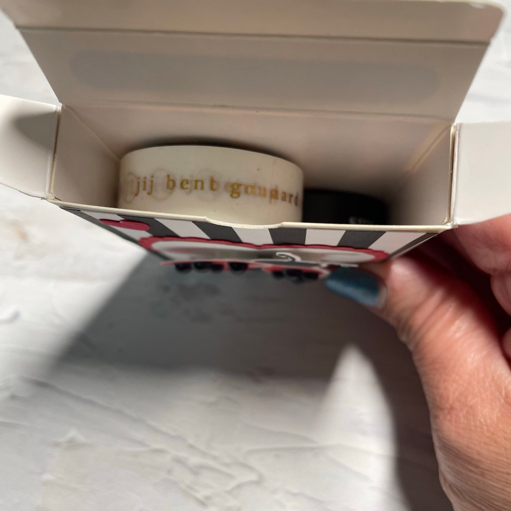 In mijn doosje heb ik 2 rolletjes washitape gedaan. Helaas heeft Stampin’Up! deze op dit moment niet in het assortiment. Maar je kunt er van alles in stoppen.
