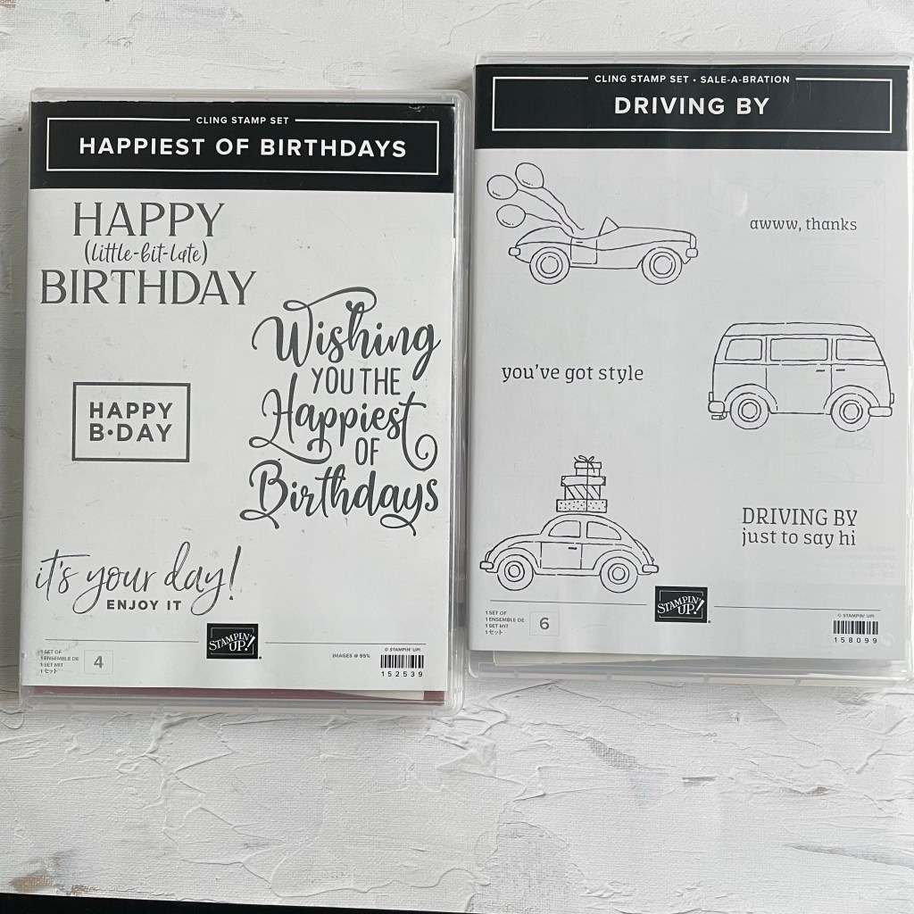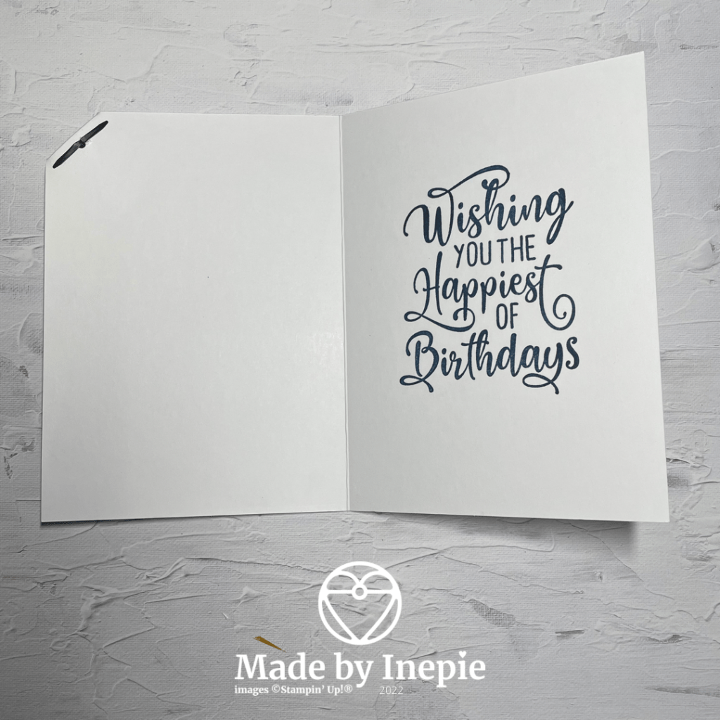 In de binnenkant heb ik de grote stempel gebruikt van de Happiest Of Birthday Stempelset. Blijft ook een favoriet van mij. Ik gebruik dan wel mijn Stamparatus dan zit hij zeker recht. Het VW kevertje komt uit de gratis Sale-A-Bration set Driving By. Deze set is de favoriet van Willem want daar zit ook de mooie Volkswagen bus in.