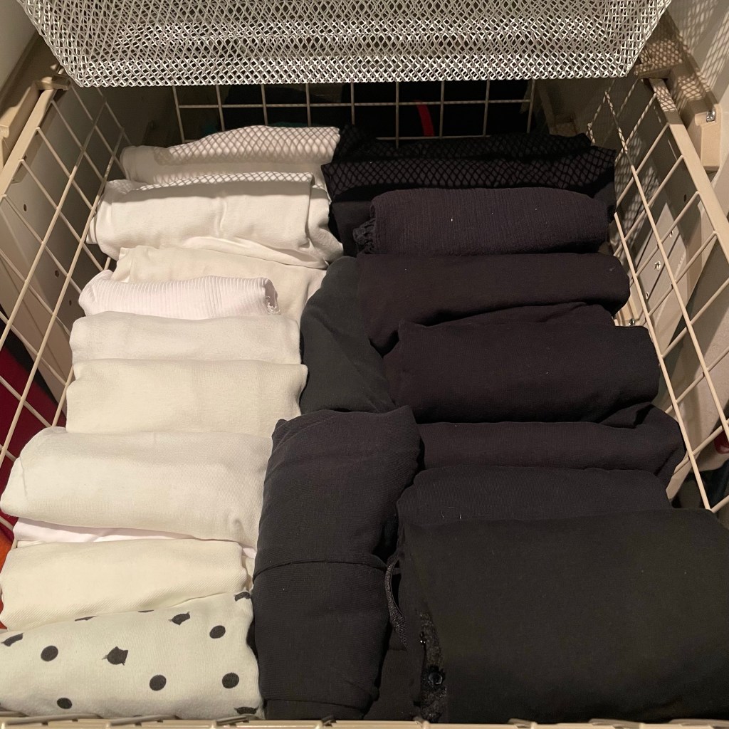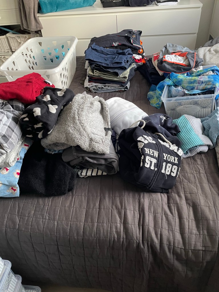 Een hoop weggedaan en daarna heb ik alles op kleur opgeborgen. Hier word ik blij van. Morgen nog 2 manden bijhalen. Dan kunnen de dozen weg.