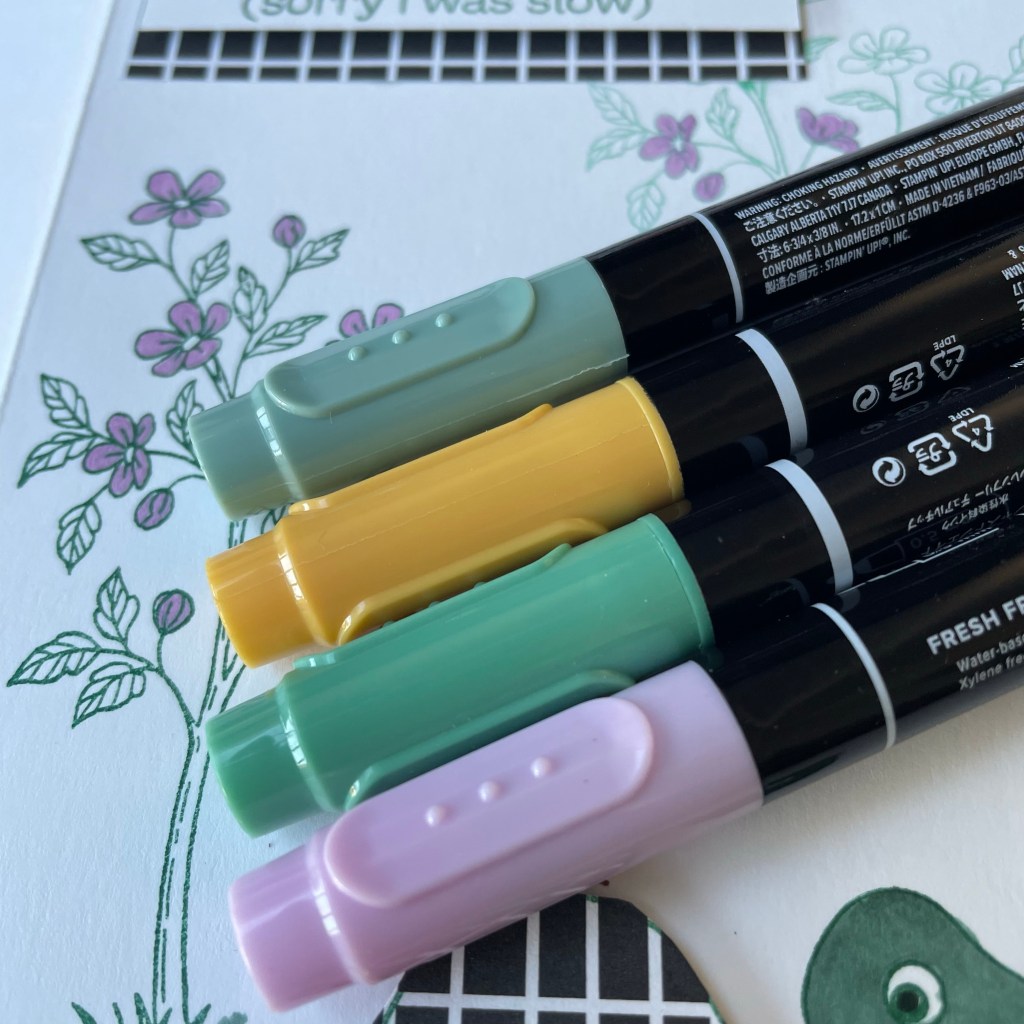 Vandaag heb ik lekker zitten kleuren met mijn Stampin Write markers. Ik was namelijk helemaal de verjaardag van een lieve klant en workshopdame vergeten. Gelukkig heb ik de mooie set Turtle Ftiends met de passende tekst; Happy Belated Birthday ( Sorry i was slow).