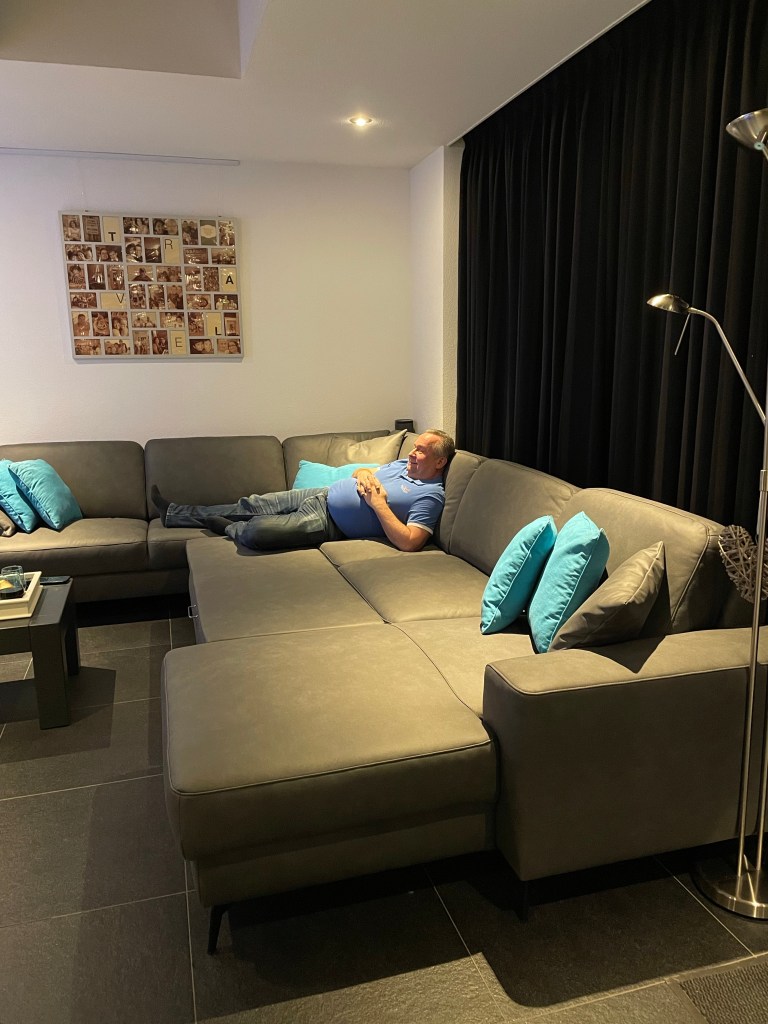 We schrokken echt dat de bank zo groot was. We hadden het wel uitgemeten maar nu hij eenmaal stond was het wel een gigantische bank. Maar dat kwam natuurlijk ook omdat het eerst zo leeg was.