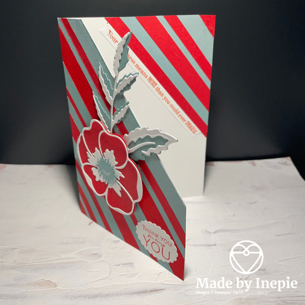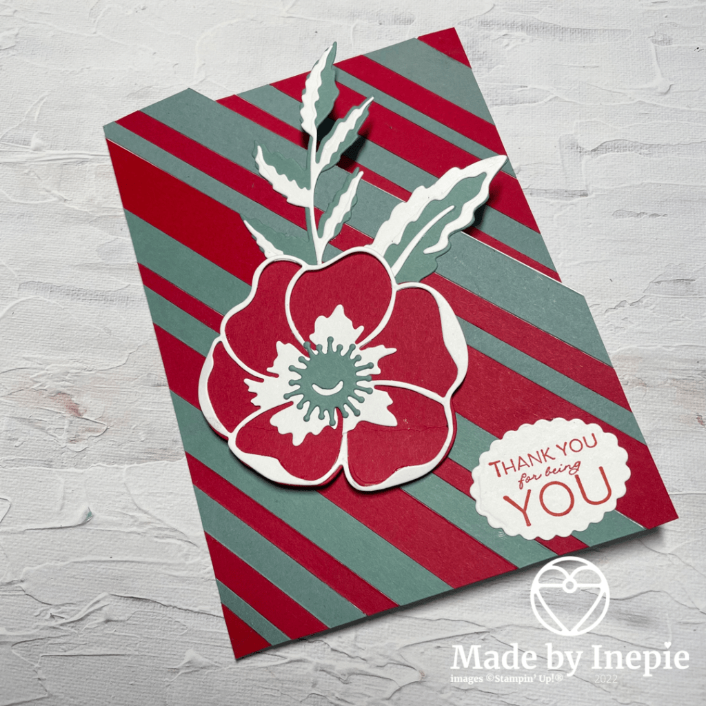 Ik ben super trots op hoe dit kaartje geworden is. Dat je van strookjes papier zo’n mooi kaartje kunt maken. En leuk om weer eens een oude stansen set te gebruiken. De Poppy Moments Dies blijven prachtig.