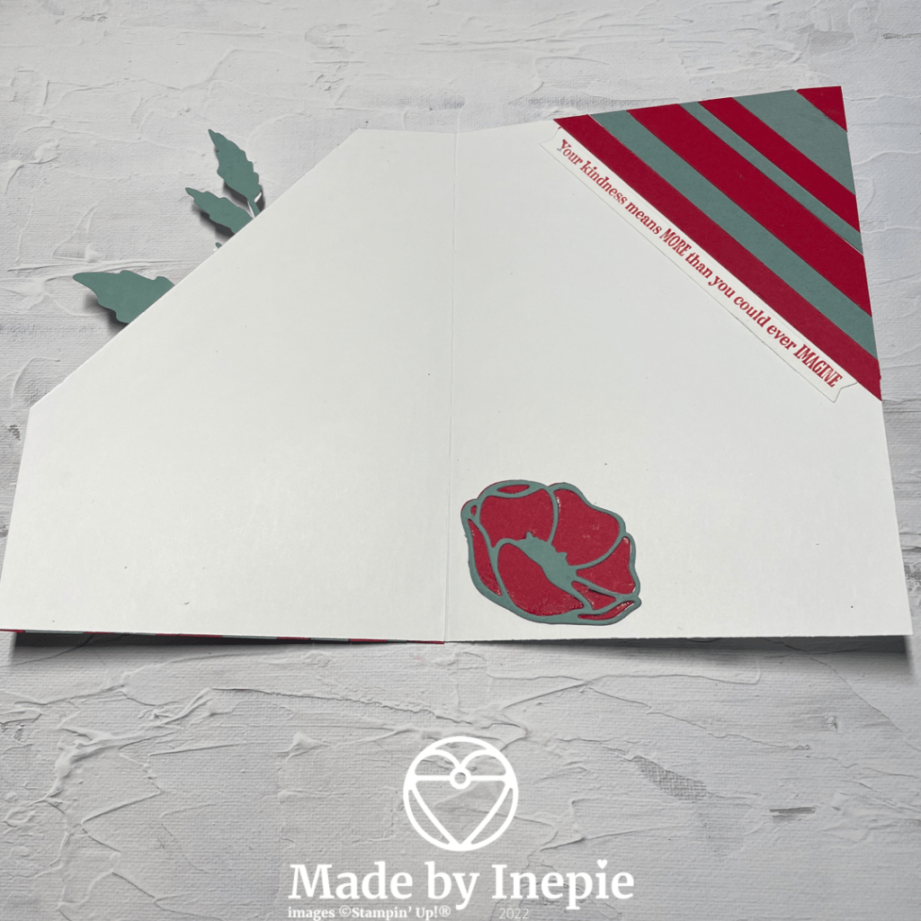 Ik besloot om de Poppy Moments Dies te gebruiken. De kleine Poppy voor de binnenkant. De grote Poppy en de bladeren voor de buitenkant. Om het meer te laten opvallen heb ik restjes wit cardstock gebruikt voor de nerven van de bladeren. En voor de Poppy.