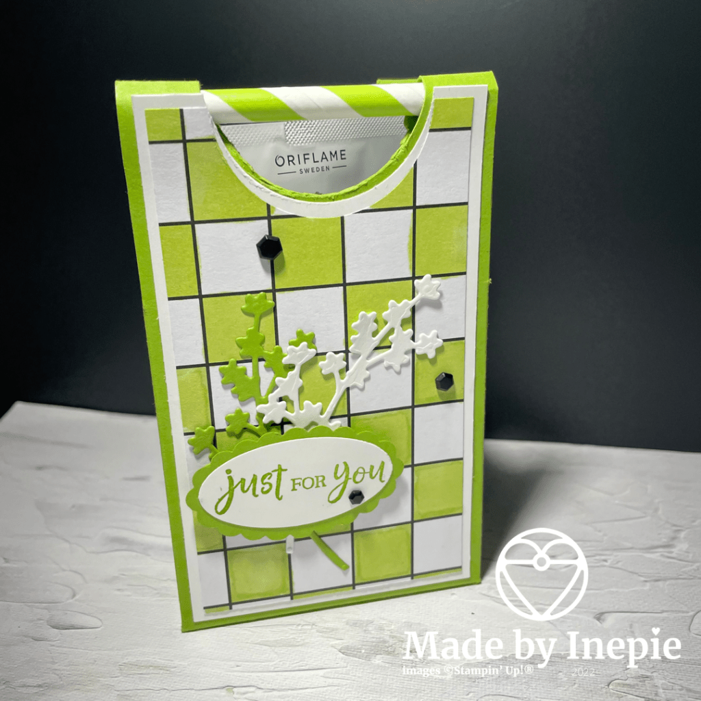 Heel lente achtig in het mooie Granny Apple Green en ik vind zelf het Dsp geweldig geworden. Ik heb een vel genomen uit het All Together Dsp. Ik hou van zwart/wit papier en heb met mijn Granny Apple Green Stampin Blend light wat vakjes ingekleurd. Zo’n leuk effect geeft dat.