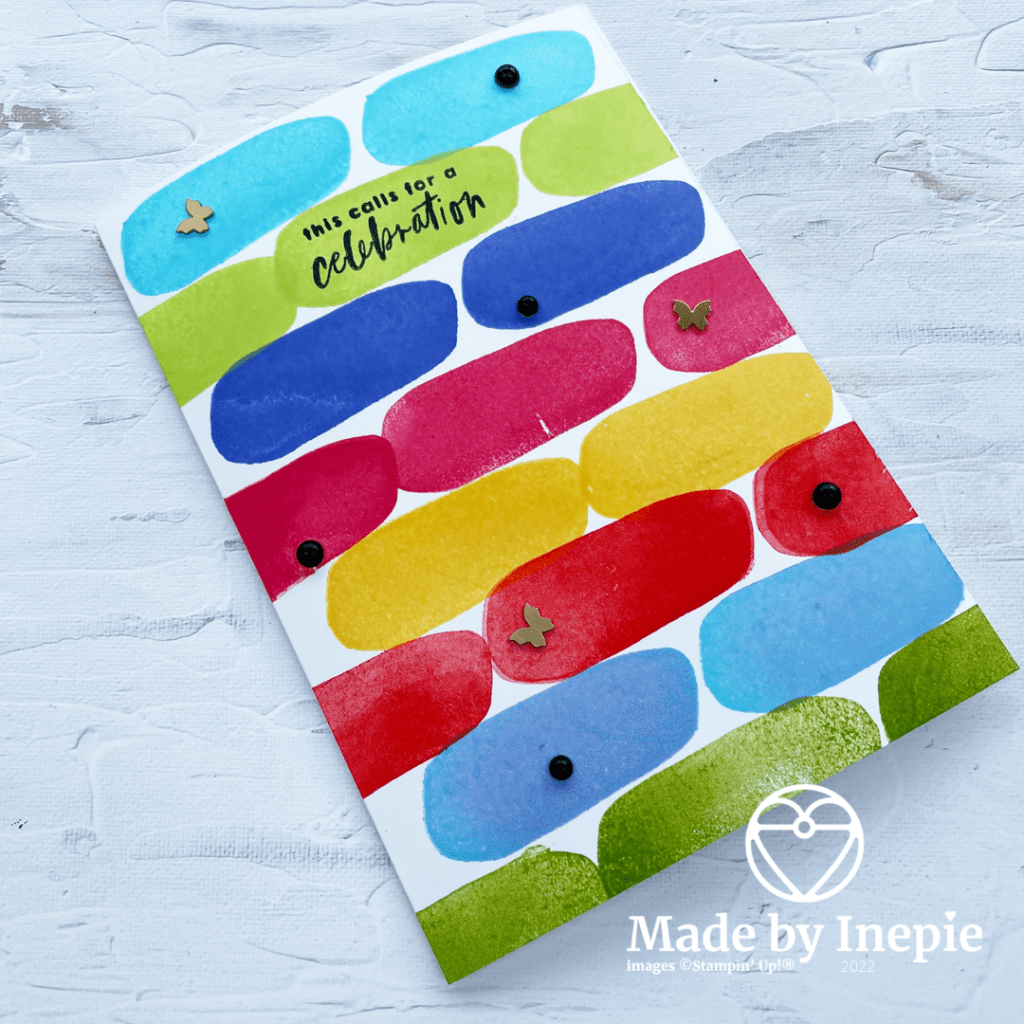 Hierdoor ge-inspireerd heb ik dit kaartje gestempeld met de nieuwe in-colors gecombineerd met inkten die in het basis assortiment zitten. Ik heb hiervoor de stempelset Hello Beautyful gebruikt. Super vrolijk en leuk kaartje geworden. En easypeasy.