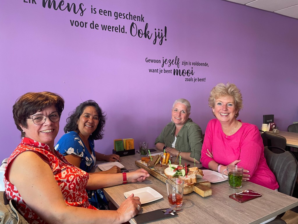 Dit jaar vier ik het hele jaar mijn zestigste verjaardag. Woensdag was de beurt aan mijn golfvriendinnen, ik heb ze getrakteerd op een lunch bij Lekker en Vrolijk hier in ons dorp. Mijn nichtje Lara werkt hier en ze vindt het altijd fantastisch als ik langs kom.