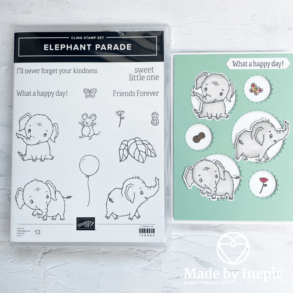 Ik ben verliefd: wat een geweldige stempelset is de Elephant Parade. Plus nog bijbehorende stansen: wat wil je nog meer. Ze zijn echt mega schattig. Hier wil je mee blijven spelen.