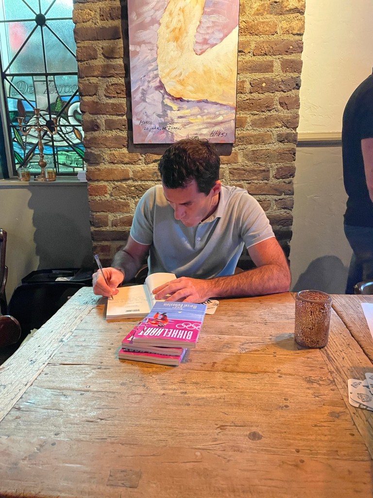 Gisteren voelde Willem zich steeds beroerder worden, hij had het ijskoud en dan weer bloedheet. Ik ben dus alleen naar de Boekpresentatie van onze vriend Marcel Balkestein gegaan. Leuke avond met mooie speech van Marcel en natuurlijk het boek Bikkelhart gekocht en hij heeft er een persoonlijke opdracht in geschreven.