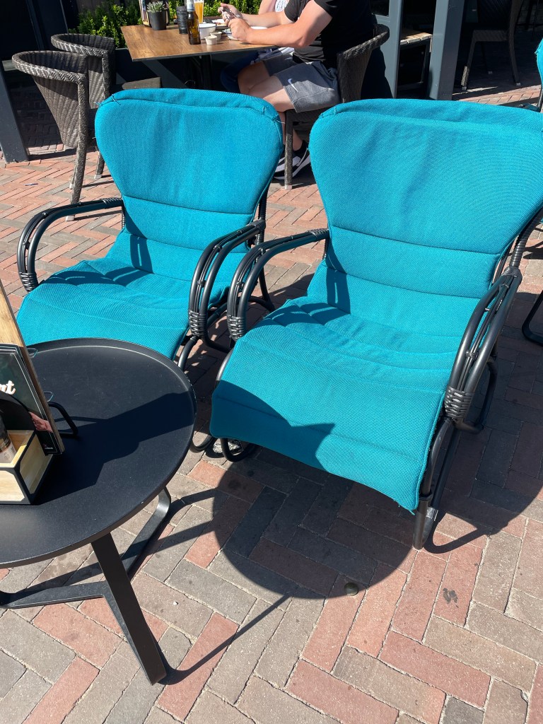 Daarna met de mannen naar Renesse gereden en op een terras gezeten met prachtige Pretty Peacock kussens😍 al lijkt het op de foto wel Bermuda Bay.