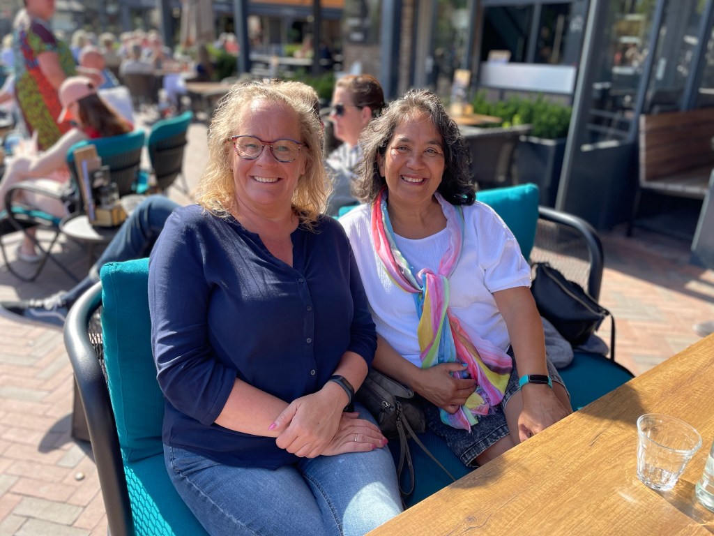 Vandaag kwamen onze vrienden Mirjam en Johan uit Heeze op bezoek. Vorig jaar in Domburg kwamen ze ook langs dus een mooie traditie is geboren, Wat een gouden dag was dit! S’ochtends eerst saampjes in de tuin van de zon en de vogeltjes genoten:
