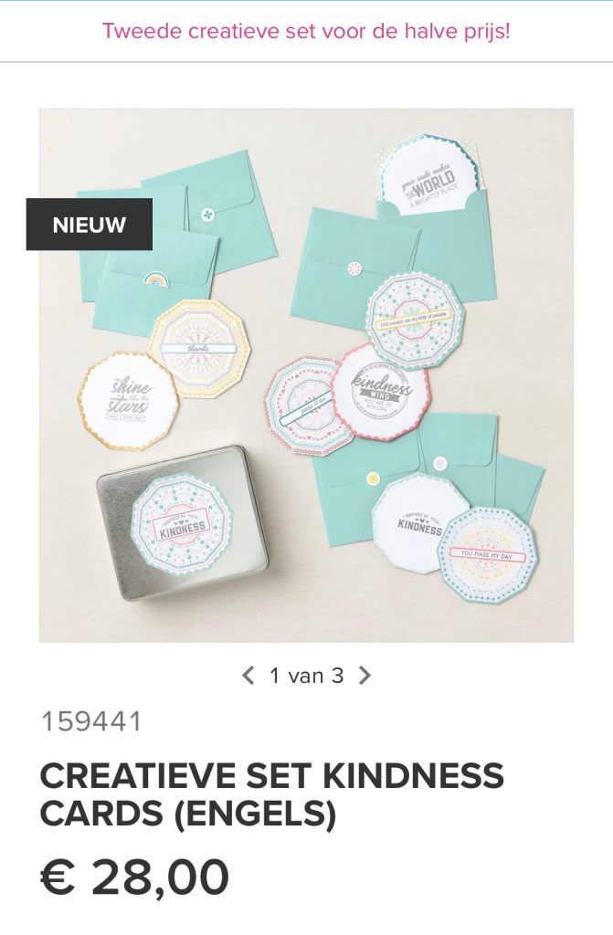 Bijvoorbeeld bestel je de Precious Parcel set ( €14,50) en de You are my Anchor ( (€23,00) betaal je voor de laatste maar €11,50 en in totaal dus maar €26,00 . Er zitten ook prachtige nieuwe sets bij zoals de mooie Kindness Card Kit