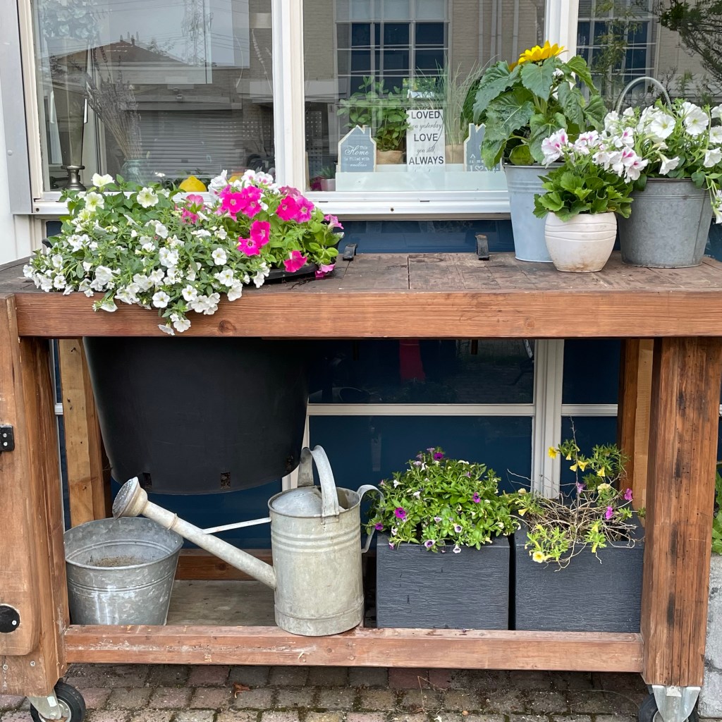 Dit was de werkbank voordat ik planten gehaald had en nu ziet het er zo uit: