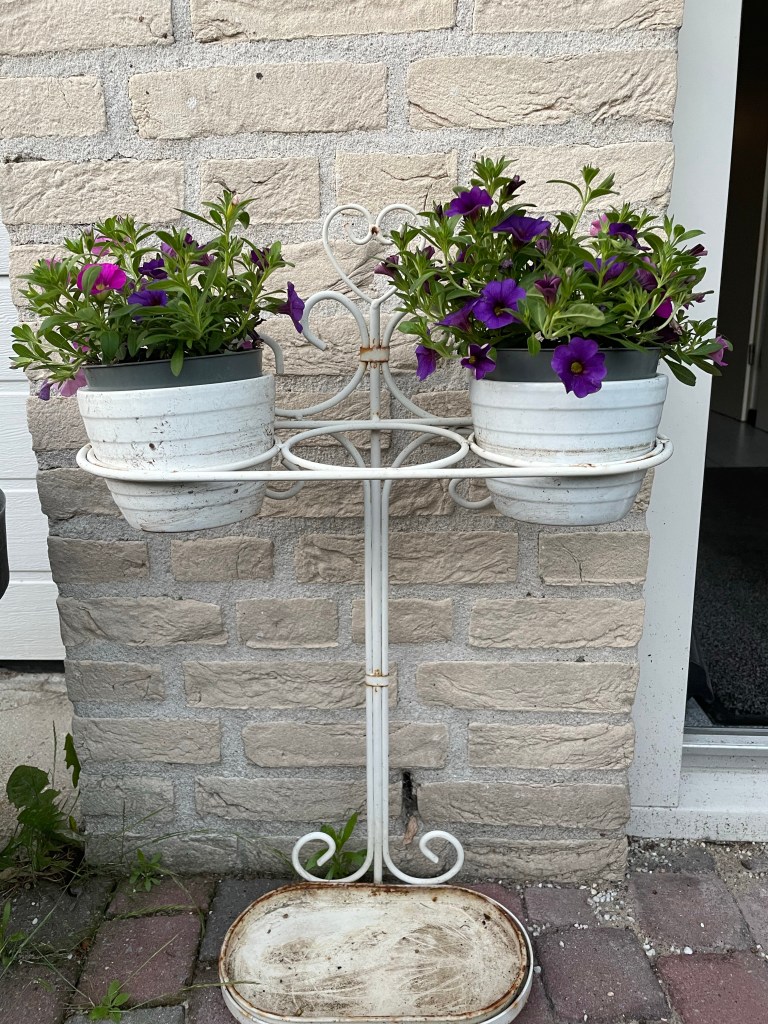 Vandaag ook onverwachts naar de Intratuin gegaan. Ik was net klaar met poetsen toen Mandy een foto stuurde van leuke hangbloempotten in mijn kleuren. Dus heeft ze mij opgehaald en ben ik nu de trotse eigenaar van dit juweeltje: