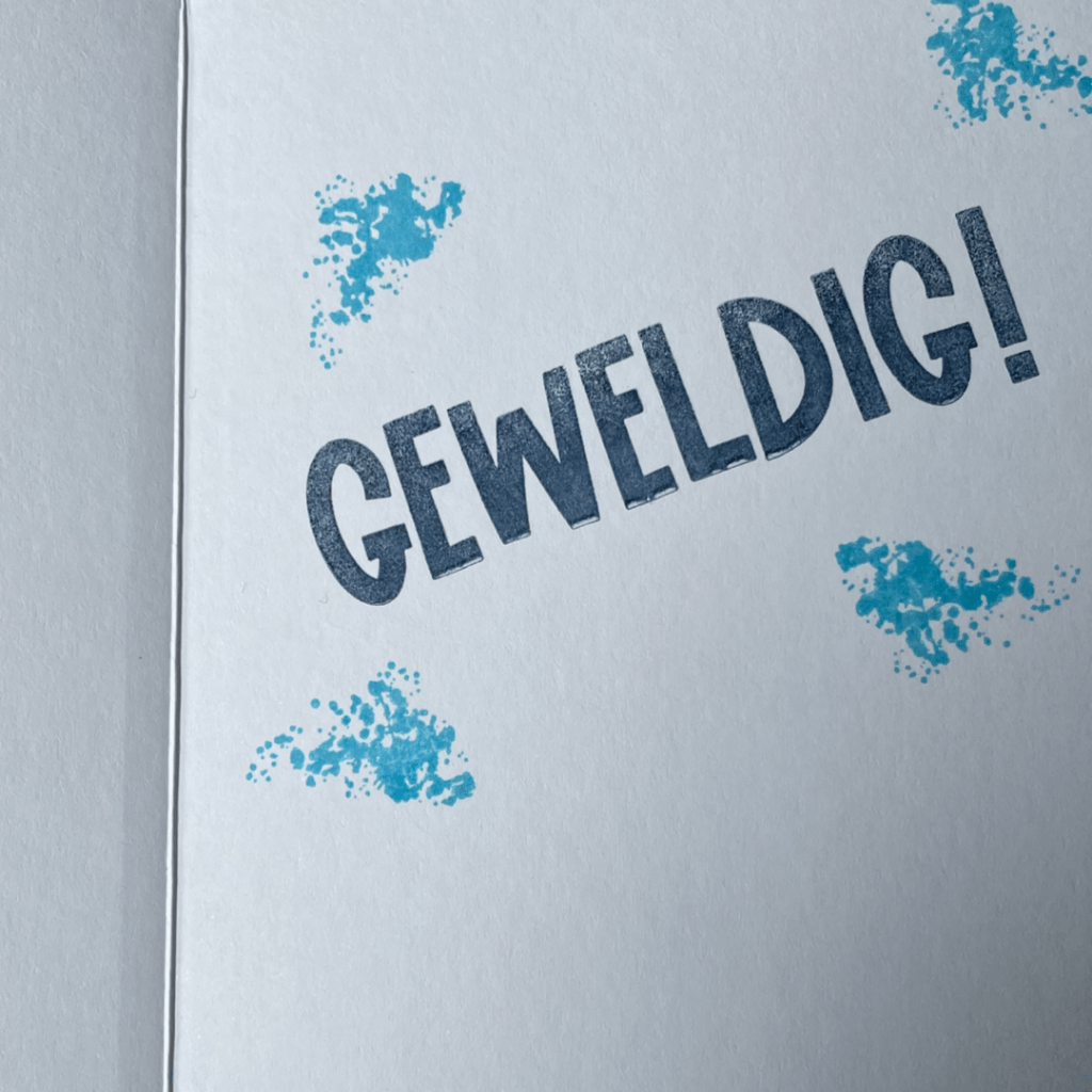 Het schattige hondje komt uit de leuke set Glad we’re Friends uit de jaarcatalogus. De woordjes geslaagd en Geweldig ( binnenkant ) komen uit een stempelset die je straks gratis uit kunt zoeken tijdens Sale-A-Bration. Morgen laat ik die set zien in mijn nieuwe YouTube filmpje. Ik had een vlekje gemaakt dus uit de Painted Poppies set de verf spatters gehaald. Niemand die het vlekje nu nog ziet.