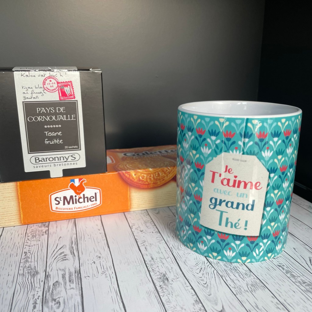 Waar ik ook erg blij mee was waren de cadeautjes die mijn vriendin Mirjam voor ons meebracht uit Frankrijk. Lekkere thee en koekjes en deze geweldige beker. Die tekst is goud: je T’aime avec un grand The! En in mijn kleur natuurlijk. Super lief. Willem kreeg een hele leuke bbq schort.