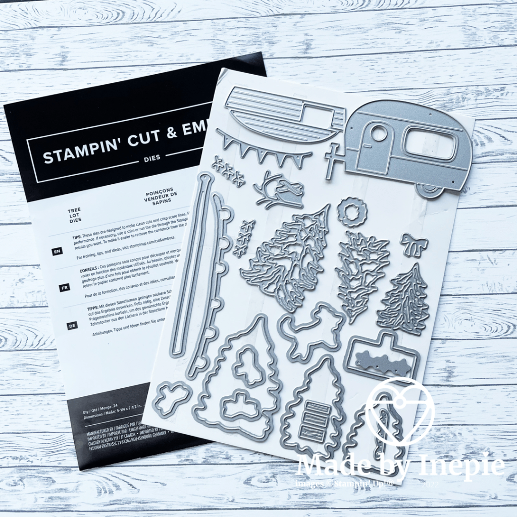 Na het eten heb ik dit leuke kaartje gemaakt met de geweldige nieuwe stansen set Tree Lot Dies. Deze stansen krijg je gratis bij besteding van €120,00 en past bij de stempelset Trees For Sale uit de nieuwe Mini catalogus ( juli-december 2022).