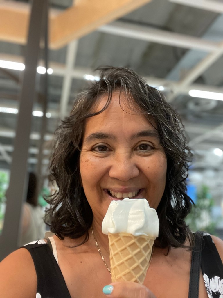 De mannen moesten nog even wat regelen en ik mocht bij de spullen blijven en mijn Soft ijsje eten. Wel heel omslachtig moet je dat voortaan bij een bestelzuil invoeren en betalen en dan wachten tot jouw nummer aan de beurt is en je het muntje krijgt voor de automaat. Niet echt klantvriendelijk. Ze had al tien keer mij een muntje kunnen geven terwijl ze gewoon stond te wachten tot de panini van degene voor mij klaar was. Pfff gelukkig was het ijsje heerlijk!