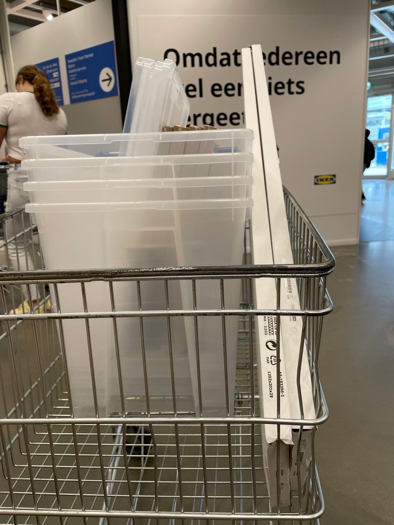 Dus hup naar Ikea en wat deurtjes en bakken gekocht plus twee extra planken want dat leek mij ook wel handig.