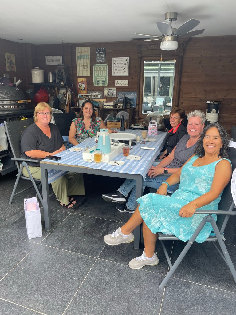 We begonnen met thee en gebak lekker buiten onder de veranda. Daar werd ik ook verwend met prachtige kaarten en cadeautjes. Geweldig! Super verwend werd ik. Heerlijk bij kunnen kletsen want door de Corona en omdat we niet naast de deur wonen elkaar veel te lang niet gezien , gesproken en geknuffeld. Vooral dat laatste had ik gemist.